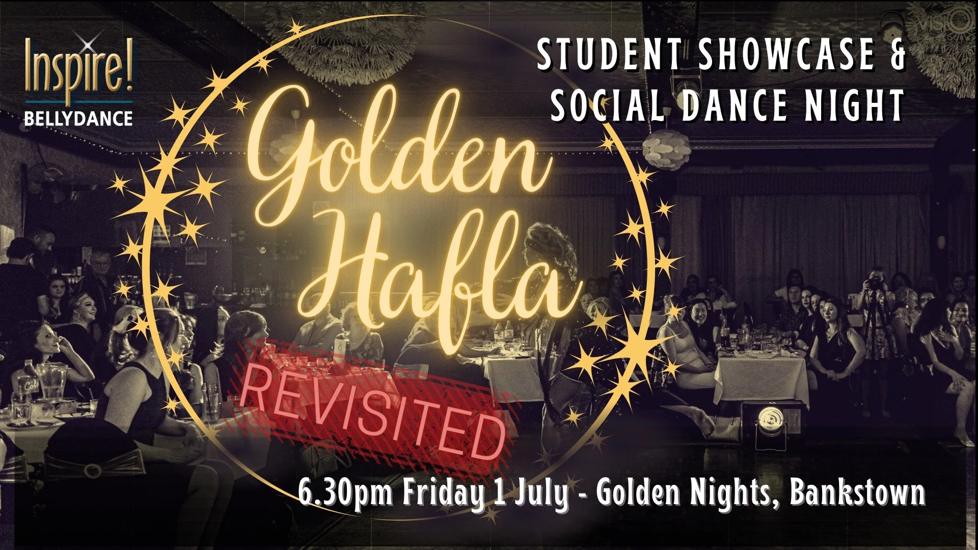 A party for Inspire Bellydance students and friends, the Golden Hafla (Revisited) will be a festive evening of sparkles including: